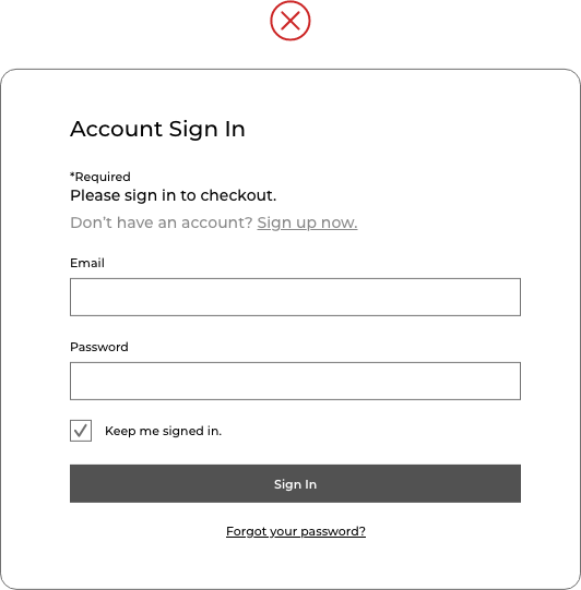 - Offer a guest checkout out of the gate, and allow users to log-in if they already have an account.
