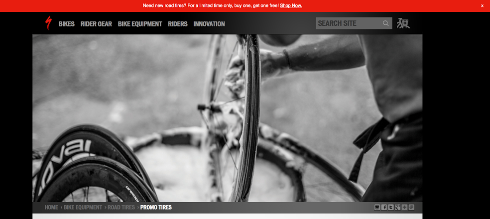 As the shopping experience began converting at target levels, our Optimization Roadmap for Specialized Bikes involved harnessing personalization to further enhance the user experience. One particular campaign that saw great success was an initiative centered around driving awareness for product-specific sales to users who had previously shown interest. Optimizely’s personalization tool made it possible to track customers who previously visit specific content. They were placed into a segment that was served a buy-one-get-one offer through a campaign called Let’s Go Dutch. We used Optimizely’s personalization tool to serve this unique offer (and experience) to the group of users who visited three separate road tire product pages. These users were presented a simple red butter bar that encouraged them to participate in the promotion. We then used A/B testing to optimize messaging strategies throughout the campaign.