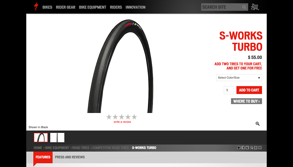 Specialized Bikes, a worldwide brand for performance road and mountain bicycles, approached our agency, to help promote an onsite buy one, get one road tire campaign called Let’s Go Dutch. In addition to A/B testing promotional content messaging through Optimizely, we identified an opportunity to serve personalized content to previously interested road tire shoppers on the site.